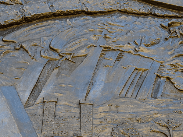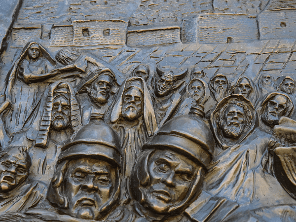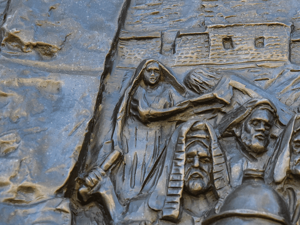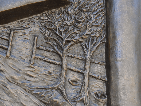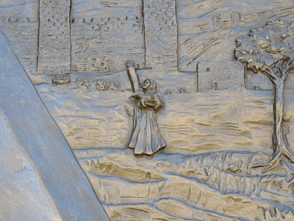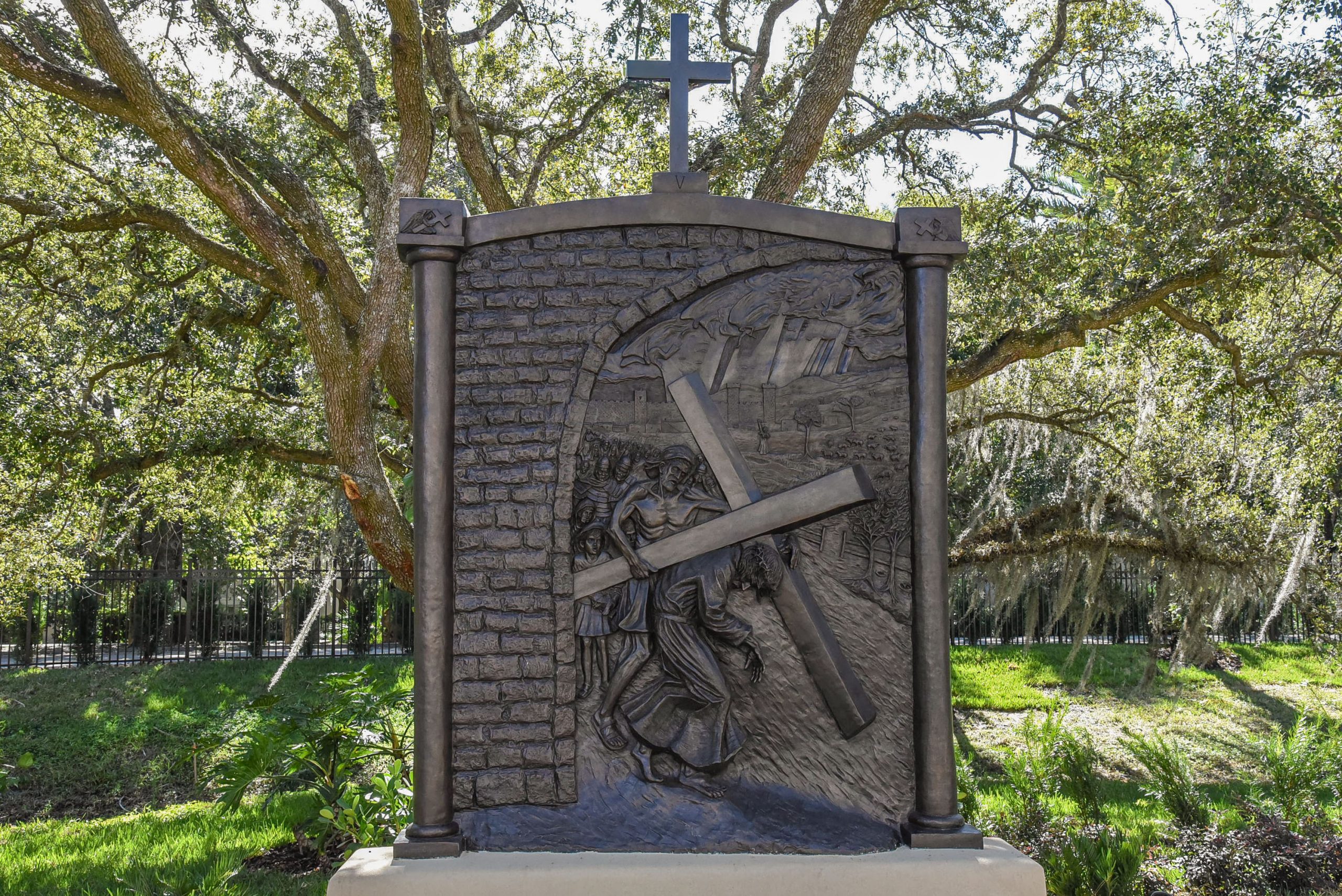 Station Description: Simon helps Jesus carry His cross and rests his hand on Jesus to comfort Him.