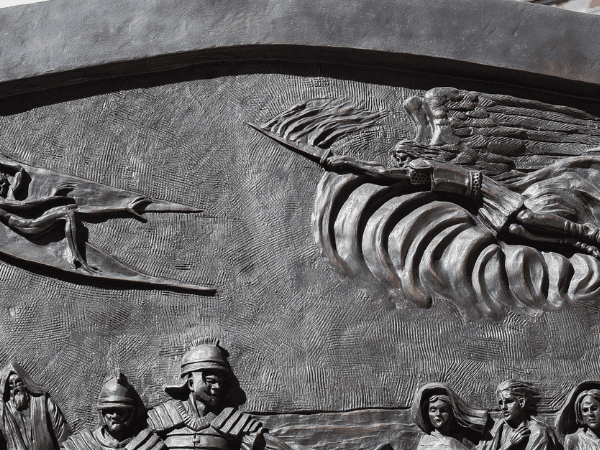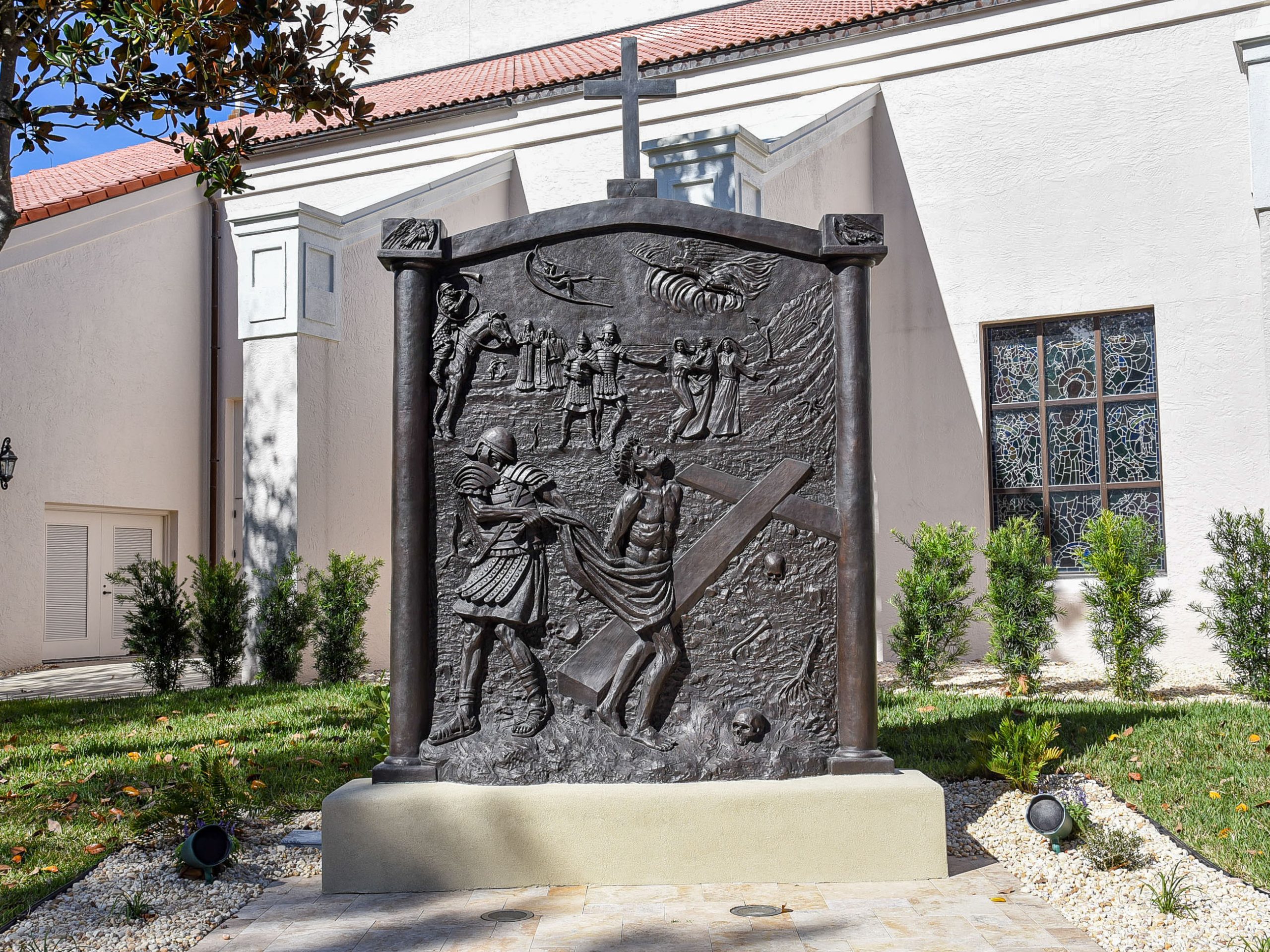At the top of the Station, St. Michael the Archangel chases away the demon who pressed the cross down upon Jesus in the previous Station.